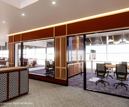 牆面與細節巧妙融入馬來傳統圖騰與文化紋樣, 為現代辦公空間注入深厚的在地文化底蘊.